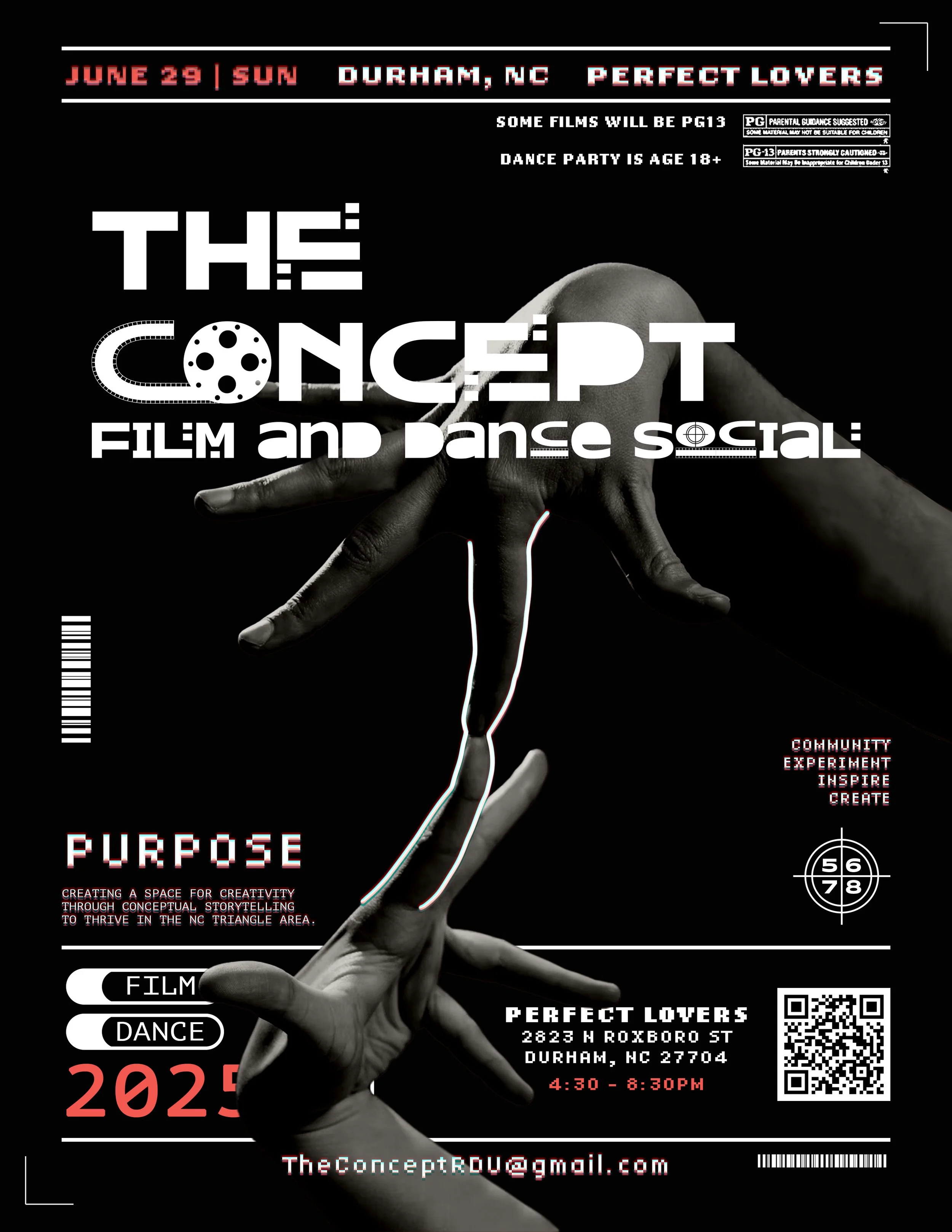 I founded this event because I wanted a place to showcase my first concept video for a grant. In translating movement based story-telling to the video medium, I learned so much, and that knowledge felt irresponsible not to share, or expand. And while I didn’t win that grant, I still could feel how the NC Artist Community needed an experience like this.